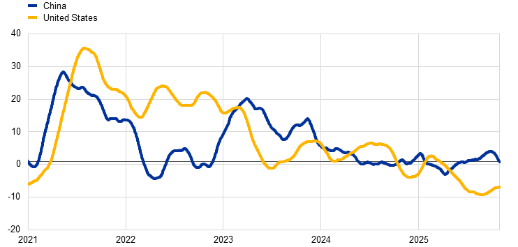 The augmented tracker currently suggests that global trade remains subdued, albeit improving (Chart D). The augmented tracker indicates that global trade bottomed out in the second quarter of 2025, consistent with the sharp decline in US imports (-8% quarter-on-quarter), and improved in the third quarter. This rebound is in line with recent national accounts releases from China and South Korea showing strong export performance – bolstered in the case of South Korea by surging artificial intelligence (AI)-related shipments which partially offset the drag from tariffs. While the augmented tracker points to below-average trade growth, the previous tracker would have shown a significantly more optimistic picture driven by buoyant financial markets. In the augmented tracker, the new satellite data act to moderate such signals.