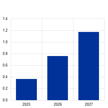 The overall impact of loan losses on banks’ CET1 ratios remains contained; however, banks with higher exposures to energy-intensive sectors face greater losses. Compared with the 2025 EU-wide stress test results, the additional system-level impact of credit risk losses from banks’ NFC portfolios on their CET1 capital ratios under the adverse scenario remains moderate, accounting for 74 basis points over the 2025-27 horizon (Chart 4, panel a). The largest additional credit risk losses arise for banks that are most exposed to high energy-intensive sectors, followed by those with the highest exposures to medium and low energy-intensive sectors (Chart 4, panel b).