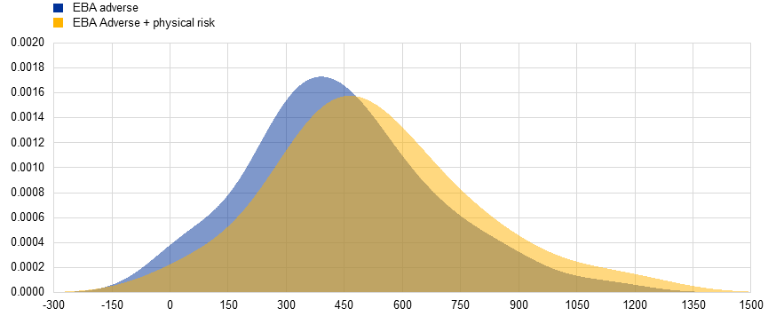 Distribution of bank credit risk losses under the EBA adverse and physical risk (NGFS NDCs combined with granular) scenarios