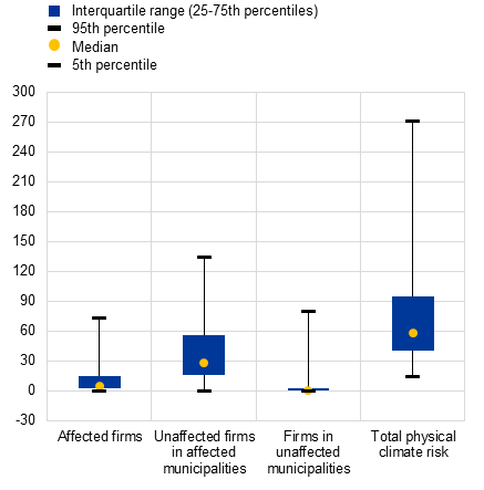 8. Other forms of acute physical risk events that occurred recently in the EU, such as wildfires, turned out not to have affected geographical areas where firms are present. This does not exclude the presence of more indirect and longer-term economic effects on people, ecosystems and assets in vulnerable areas, but assessment of these is outside the scope of this box. See, for example, Oom et al. (2022).