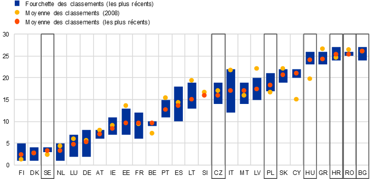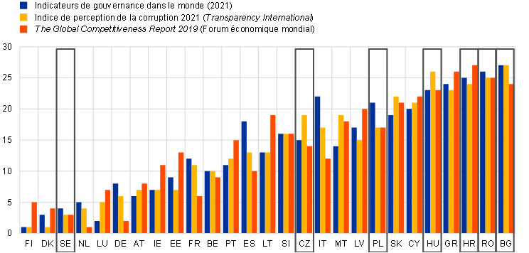 De plus, s’agissant des pays de l’UE, l’intérêt porté aux institutions n’a fait que gagner en importance au plan analytique et en matière de politique économique ces dernières années. Il existe encore, de manière générale, une importante marge d’amélioration des mesures. Enfin, les approches par pays d’une question aussi complexe que la qualité des institutions ou la bonne gouvernance sont nécessairement insuffisantes et nécessitent à l’évidence d’être complétées par des évaluations plus spécifiques à chaque pays et à plus long terme. Dans le même temps, les difficultés de mesure ne devraient pas conduire à minimiser ces déterminants essentiels de la prospérité, de l’équité sociale et du bien-être à long terme.
