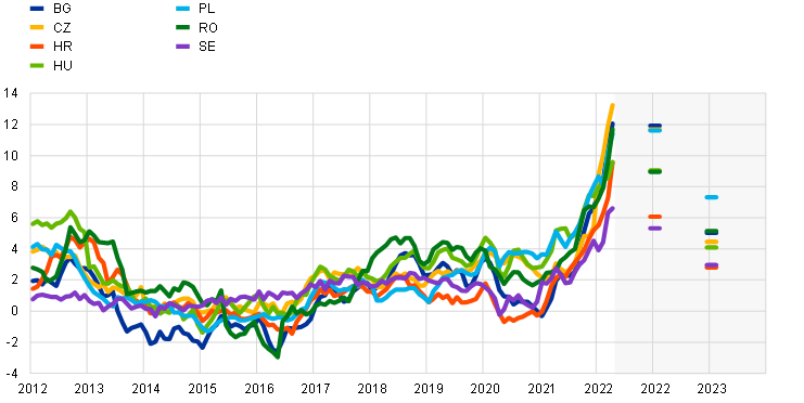 Le présent Rapport sur la convergence ne tient compte que dans une mesure limitée de l’incidence du conflit russo-ukrainien sur l’évaluation de la convergence. Il est trop tôt pour tirer des conclusions solides sur la manière dont les trajectoires de convergence seront affectées et sur la question de savoir si cet effet se matérialisera de façon symétrique ou asymétrique dans tous les pays concernés. Plus particulièrement, l’évaluation prospective de la convergence est entourée d’une grande incertitude et l’incidence globale ne peut être évaluée qu’ex post.