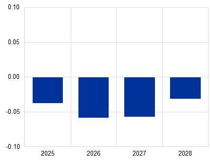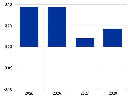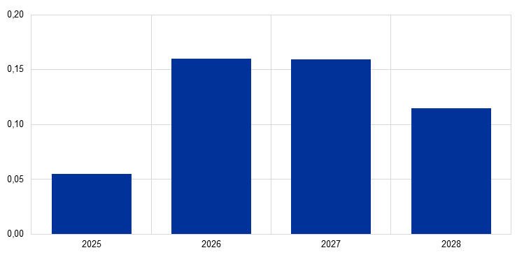 9. Se estimează că impactul cumulat asupra inflației inclus în proiecția de bază va fi sub 0,1 în perioada 2025-2028.