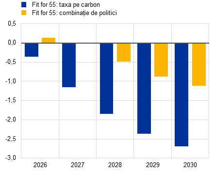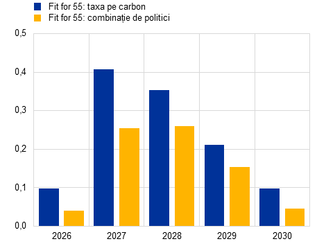16. Proiecțiile de bază nu includ un impact asupra altor măsuri ale UE care fac parte din pachetul „Fit for 55”, deoarece impactul acestora fie nu a fost estimat, fie s-a dovedit a fi neglijabil. Acest lucru este în concordanță cu previziunile economice ale Comisiei Europene din toamna anului 2025, care estimează un impact neglijabil al mecanismului de ajustare a carbonului la frontieră asupra inflației pe termen scurt.