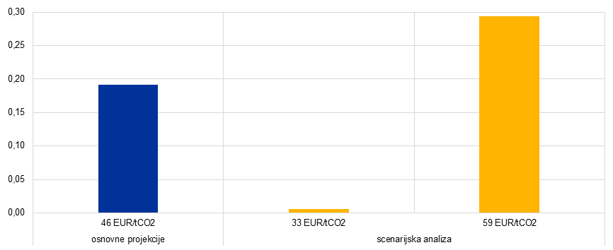 Osnovne projekcije vključujejo nacionalne davke na ogljik v 11 državah euroobmočja v letu 2027.