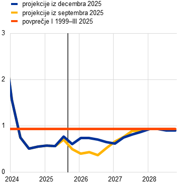 Projekcije strokovnjakov Eurosistema | december 2025 | 1,4 | 1,2 | 1,4 | 1,4 | 2,1 | 1,9 | 1,8 | 2,0 | 2,4 | 2,2 | 1,9 | 2,0 | |