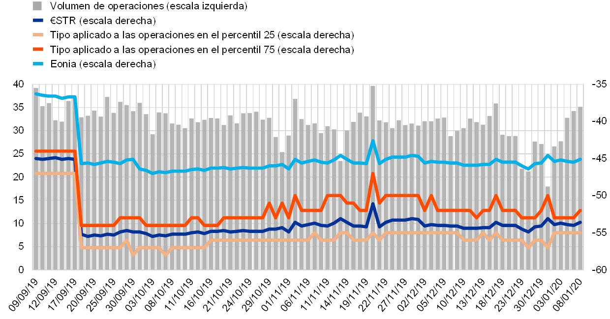 El 2 de octubre comenzó a publicarse un nuevo tipo de referencia a un día, el €STR (tipo de interés a corto plazo del euro), con el objetivo de sustituir al actual tipo de referencia, el eonia, en enero de 2022. La publicación diaria del €STR ha resultado satisfactoria y la metodología ha demostrado ser fiable.