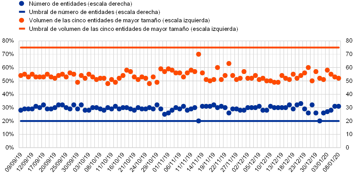 - Los requerimientos de presentación de información estadística sobre los mercados monetarios y la lista de los actuales agentes informadores se pueden consultar en el sitio web del BCE. La recopilación periódica de información estadística sobre los mercados monetarios comenzó el 1 de julio de 2016.
