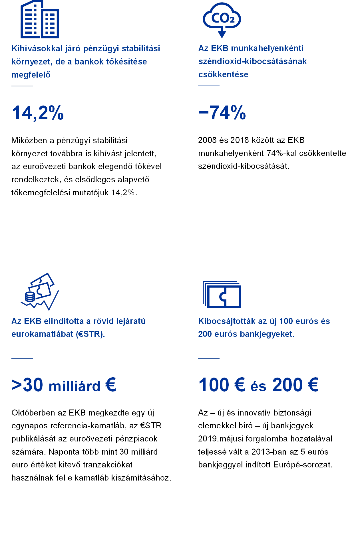 ** Megjegyzés: az alábbi írás az EKB 2019. évi tevékenységéről szól, és a koronavírus (COVID-19) világjárvány kitörése előtt véglegesítettük. Azóta a gazdasági helyzet és az EKB monetáris politikai intézkedései jelentősen megváltoztak. A Bank a megbízatásának keretén belül minden szükséges lépést megtesz annak érdekében, hogy az euroövezetet átsegítse a válságon. **