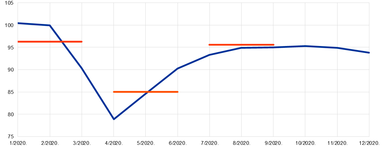 - Više pojedinosti vidi u okviru pod naslovom „Short-time work schemes and their effects on wages and disposable income”, Ekonomski bilten, broj 4, ESB, 2020. i okviru pod naslovom „Assessing wage dynamics during the COVID-19 pandemic: can data on negotiated wages help?”, Ekonomski bilten, broj 8, ESB, 2020.