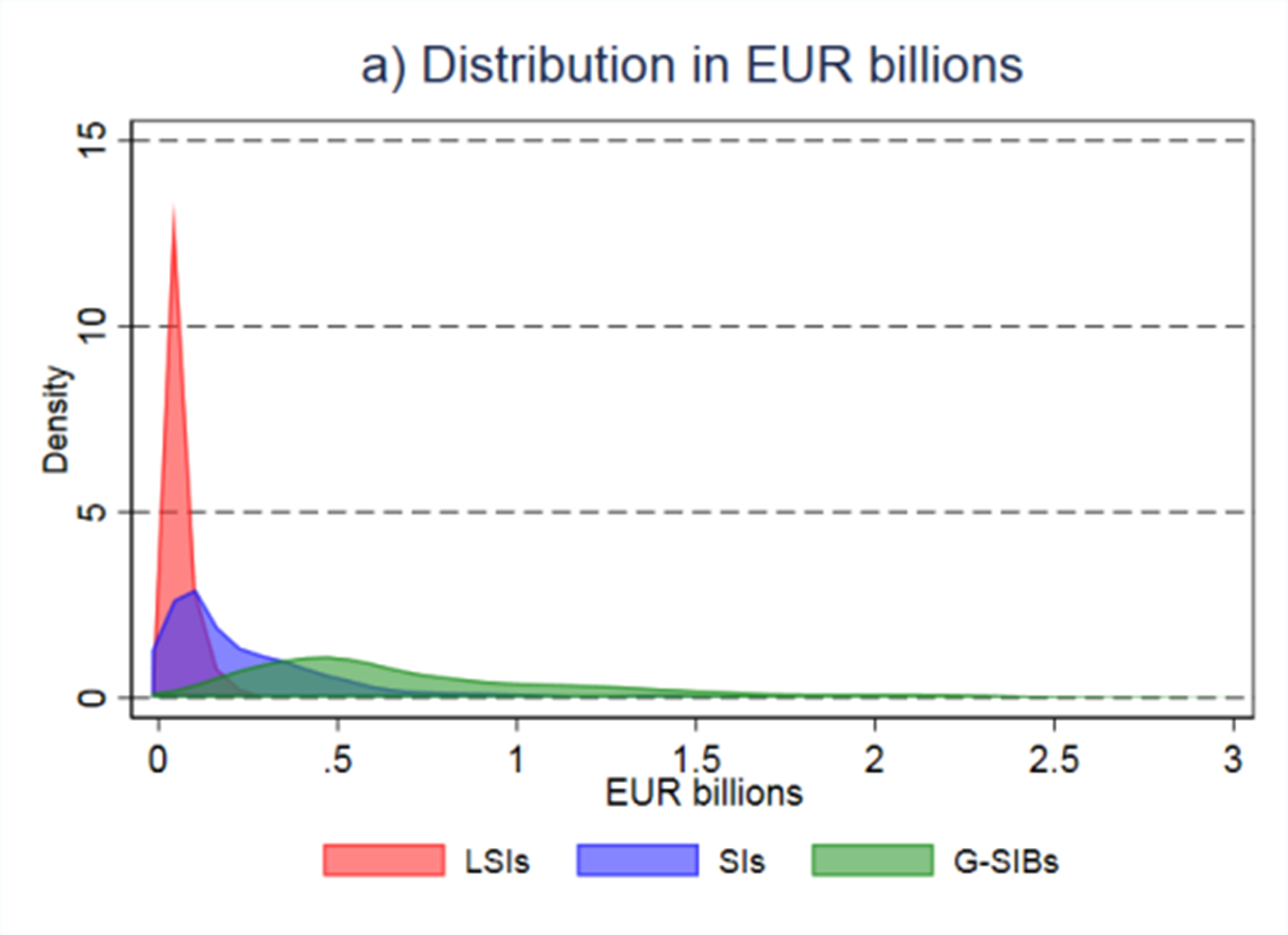 Notes: The cut-off date for data was the third quarter of 2017. The large exposure limit is 25% of a bank’s eligible capital. The figures provides a lender perspective, meaning that they show the size distribution of large exposures held by euro area LSIs, SIs and G-SIBs respectively. LSIs denotes euro area less significant institutions and SIs denotes euro area significant institutions, while G-SIBs denotes euro area global systemically important institutions. A cut-off threshold was set at €3 billion.