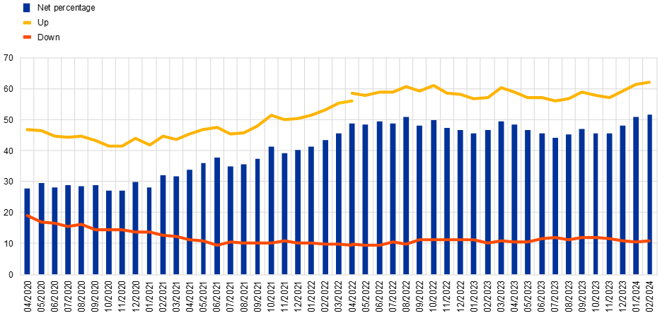 Notes: Weighted estimates. Net percentages are obtained by subtracting the percentage of respondents indicating that their household spending will decrease from the percentage of respondents indicating that their household spending will increase. The shift in the time series in April 2022 visualises the change in the composition of the aggregates due to the inclusion of five additional countries (IE, GR, AT, PT and FI).