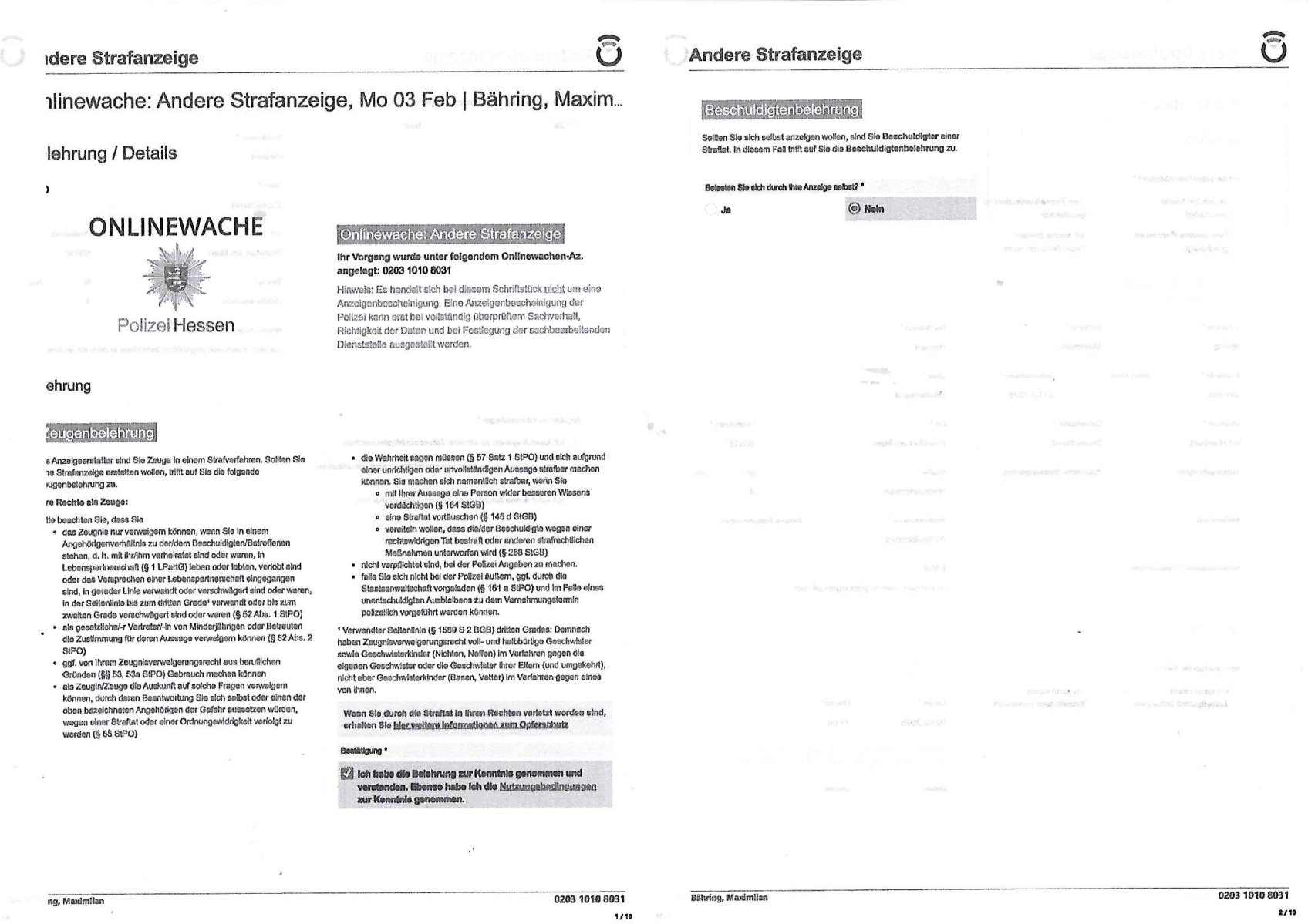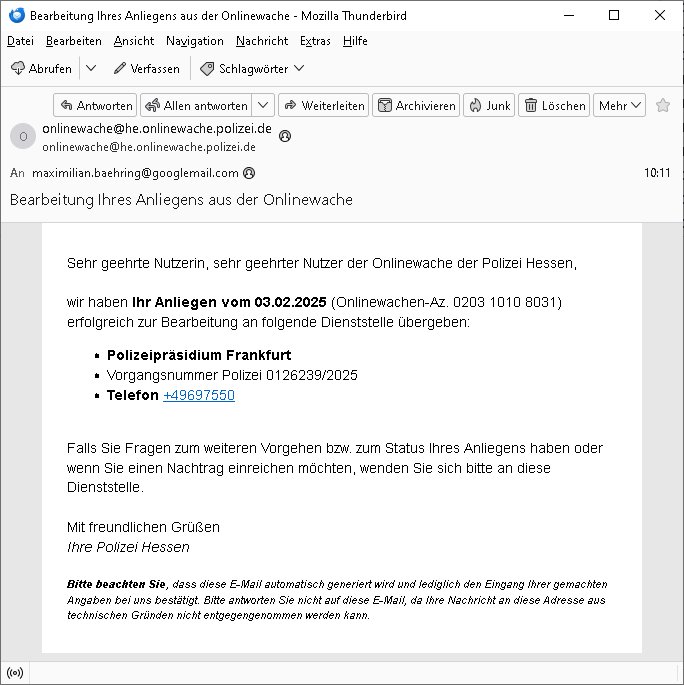 | 1 / 10 Onlinewache: Andere Strafanzeige, Mo 03 Feb | Bähring, Maxim …