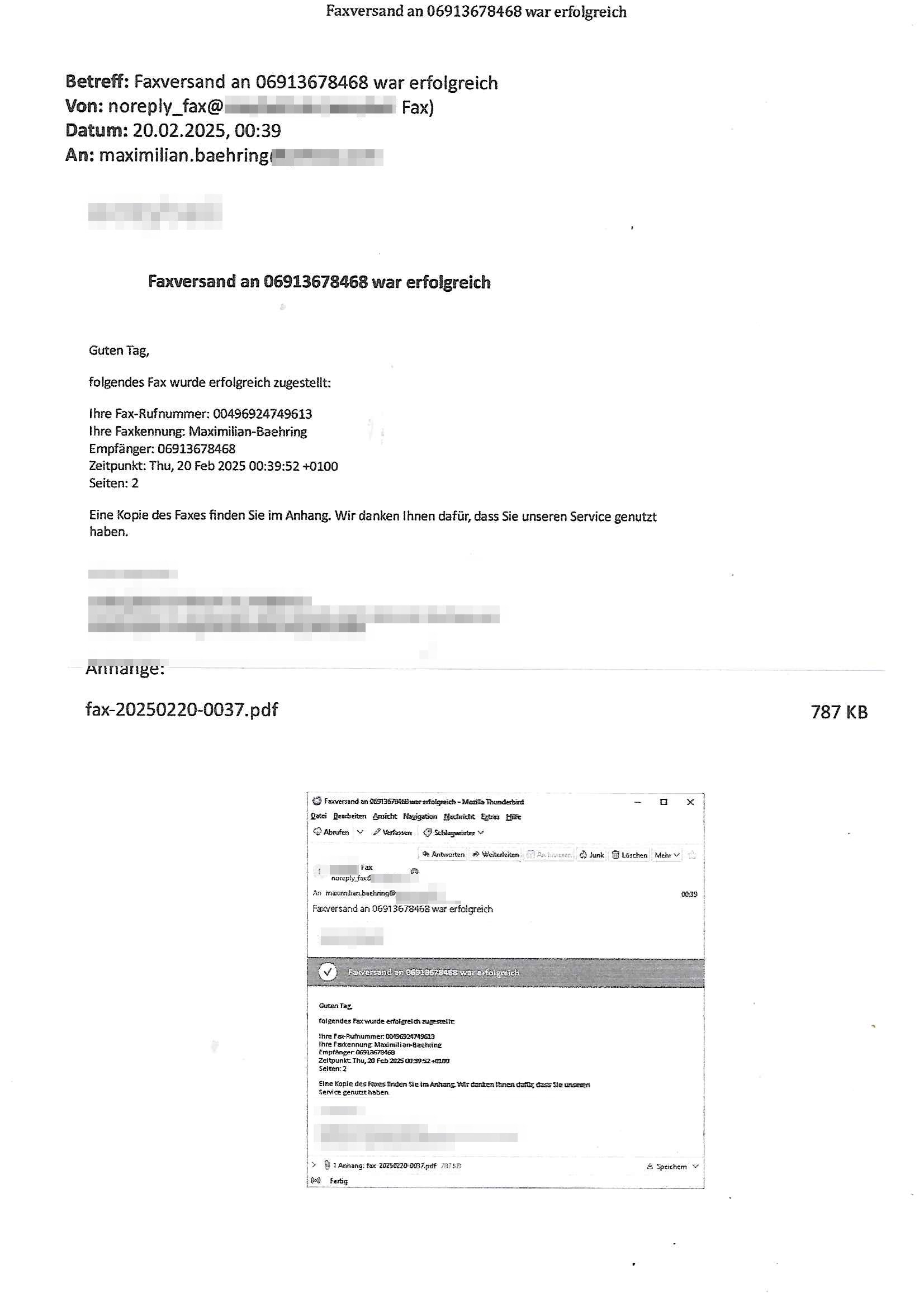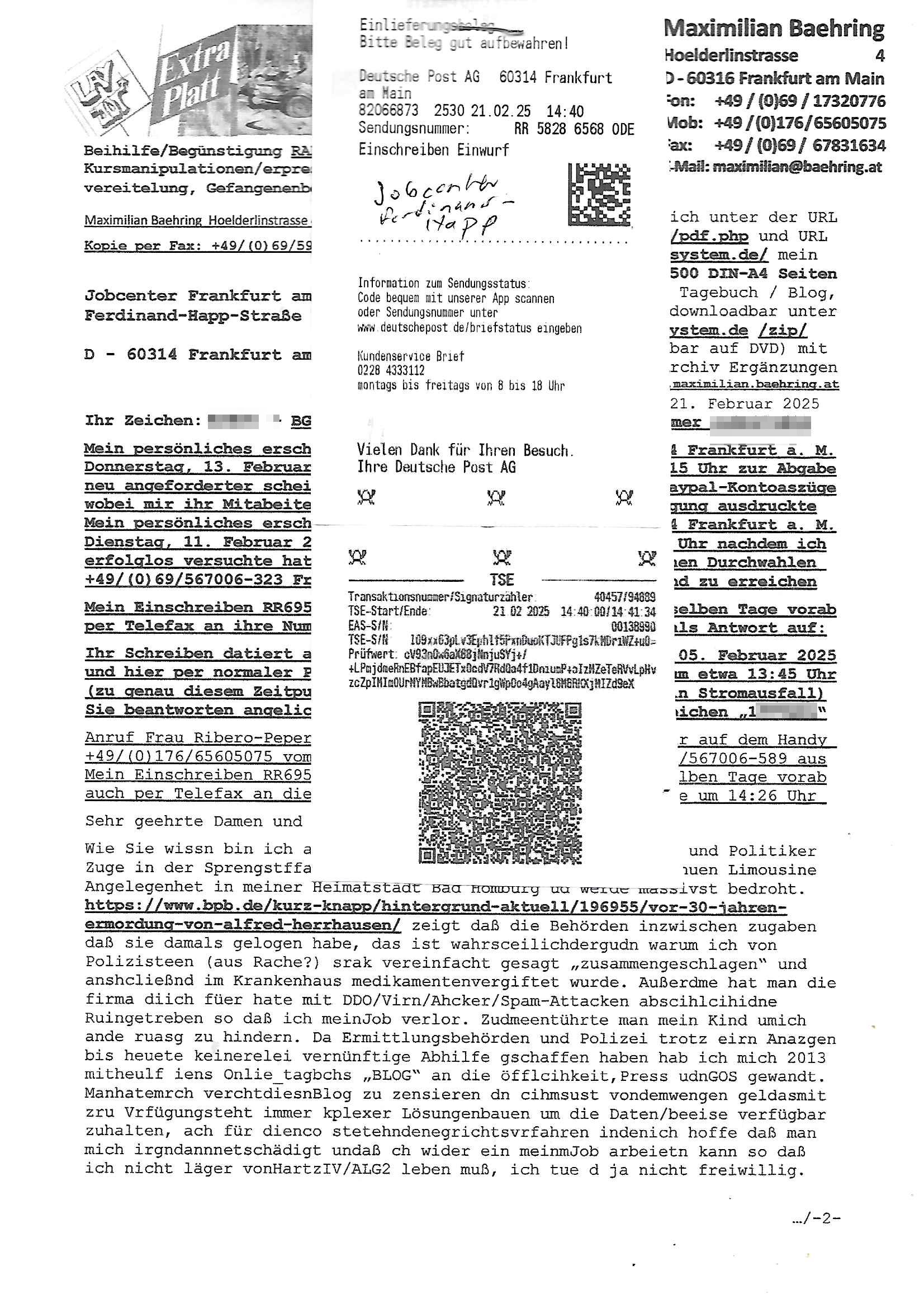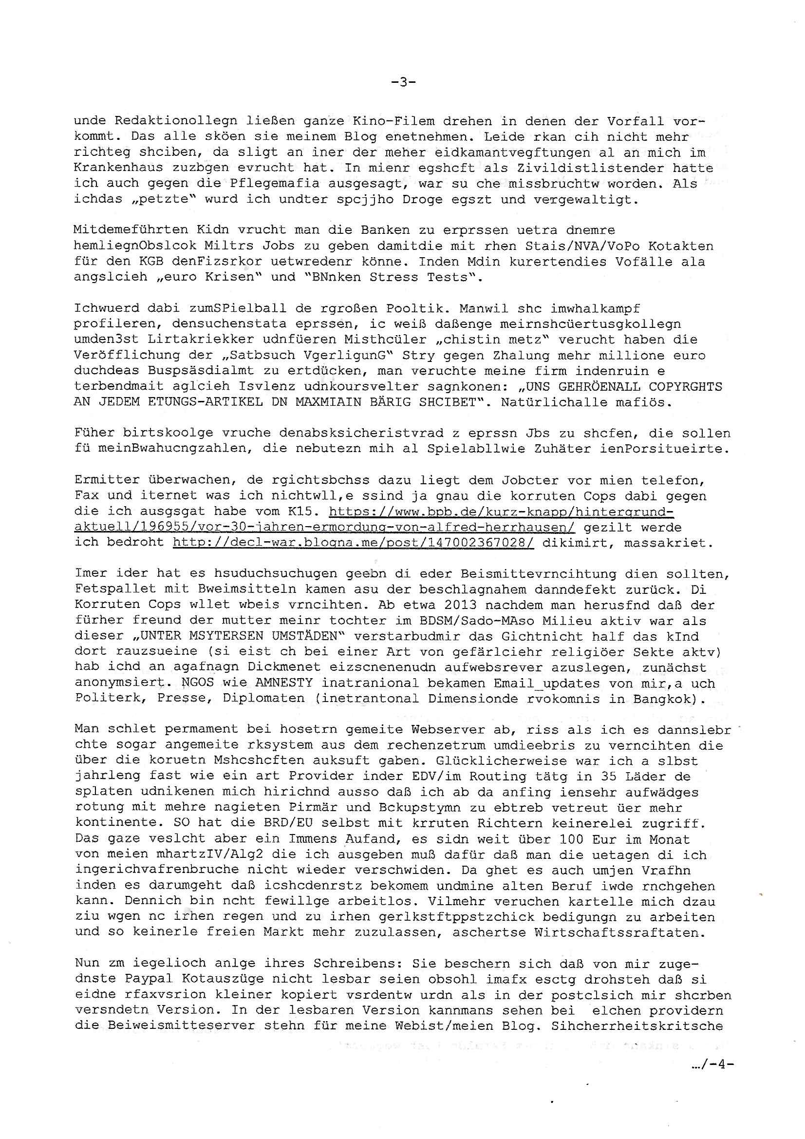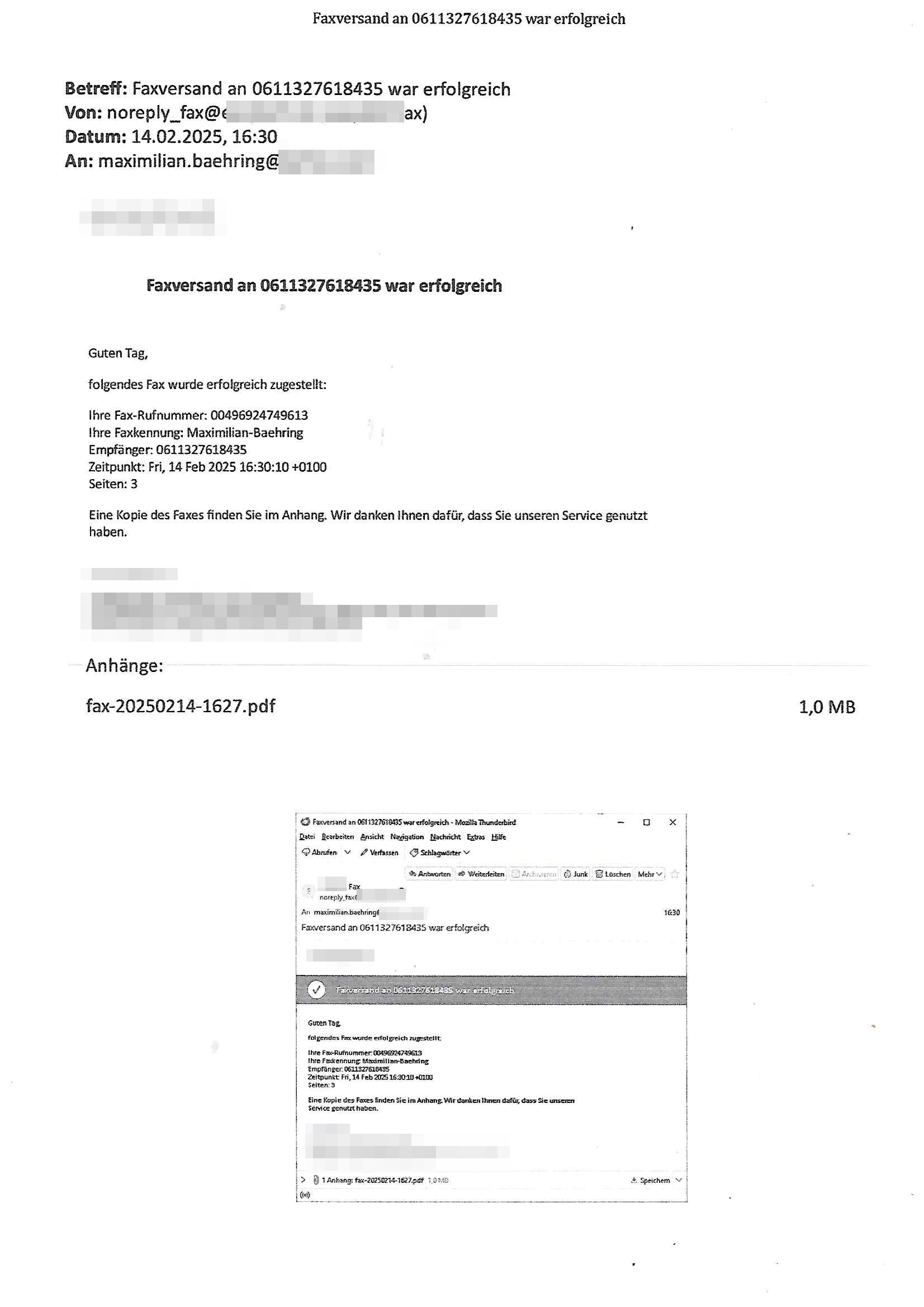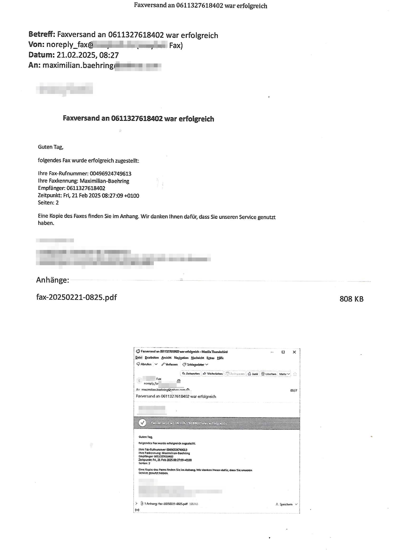 Maximilian Baehring Hoelderlinstrasse 4 D-60316 Frankfurt/M nur per Telefax +49/(0)6131/70-12517 Herrn Christian Metz oder seienr Vertretung (EILT!) 3sat Redaktion Kulturzeit hilfs-/erstzweise Redaktion zdf heute show, ZWEITES DEUTSCHES FERNSEHEN D – 55100 Mainz Im Internet findet sich unter der URLhttp://banktunnel.eu/pdf.php und URL http://blog.sch-einesystem.de/ mein ausgedruckt ÜBER 31.750 DIN-A4 Seiten umfassendes Internet Tagebuch / Blog,als Offline Version downloadbar unterhttp://*** /***/ als ISO-Image (brennbar auf DVD) mit tagesaktuellen ZIP-Archiv Ergänzungen Frankfurt a. M., den 27. Februar 2025 Gegen „christian metz“ der währned er den Schutz der Anonymität de Presse dazu missbrauchte Stratfaten zu begehen eine falsche Anschrift „Loisstraße 108 in 61348 Bad Homburg“ angab liefen bereits Ermittlungen. Diese werden nun ausge-weitetwie sie im Netz nachlesen können. Grund sind die egstregen massnemdialen Erpressunsgversuche. -------- Nachricht -------- Betreff: Faxversand an 061317012157 war erfolgreich Datum: Thu, 27 Feb 2025 13:48:00 +0000 (UTC) Von: Fax <noreply_fax@> An: maximilian.baehring@ Web2Fax Faxversand an 061317012157 war erfolgreich Guten Tag, folgendes Fax wurde erfolgreich zugestellt: Ihre Fax-Rufnummer: 00496967831634 Ihre Faxkennung: Maximilian-Baehring Empfänger: 061317012157 Zeitpunkt: Thu, 27 Feb 2025 14:48:00 +0100 Seiten: 3 Eine Kopie des Faxes finden Sie im Anhang. Wir danken Ihnen dafür, dass Sie unseren Service genutzt haben. | |