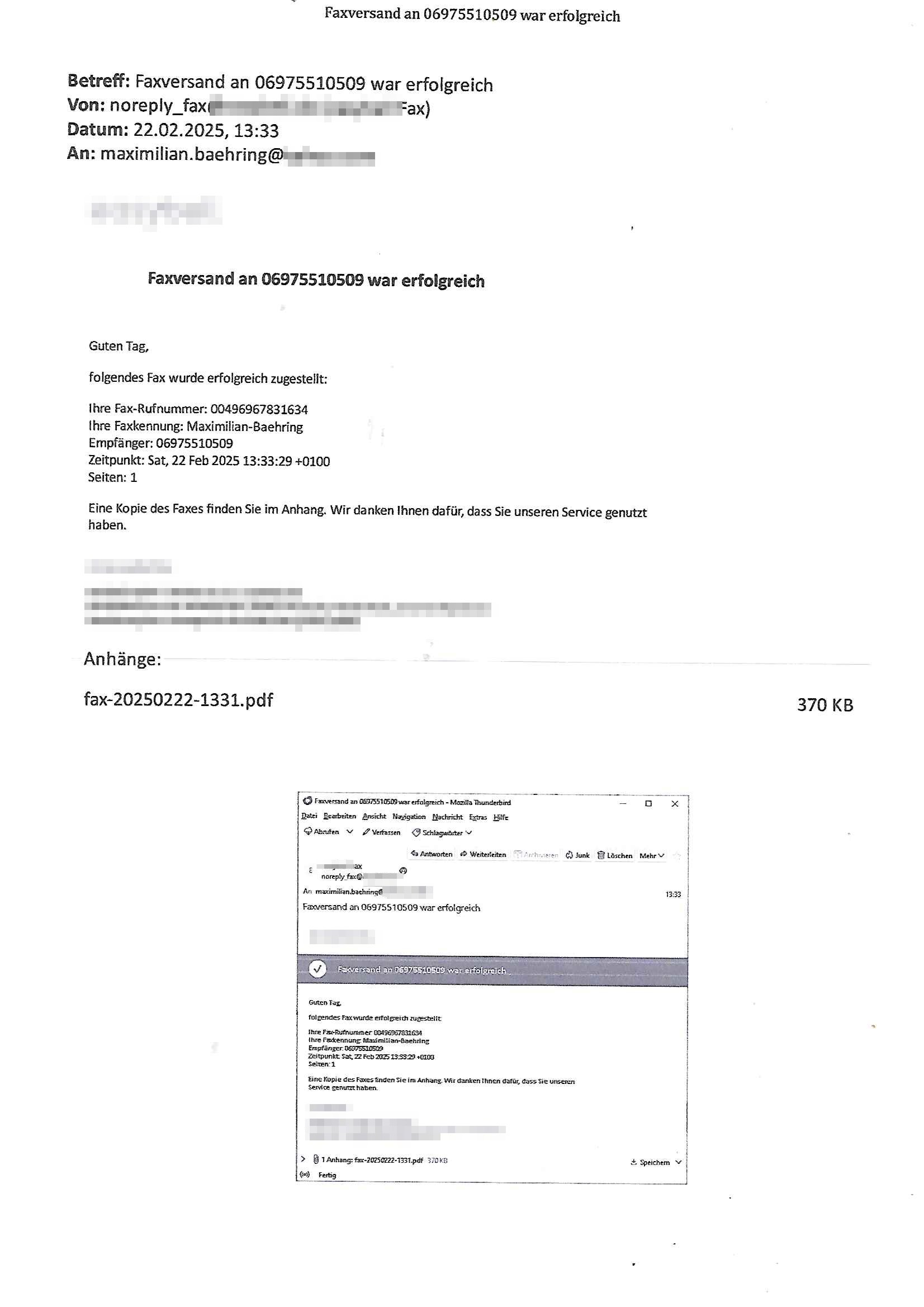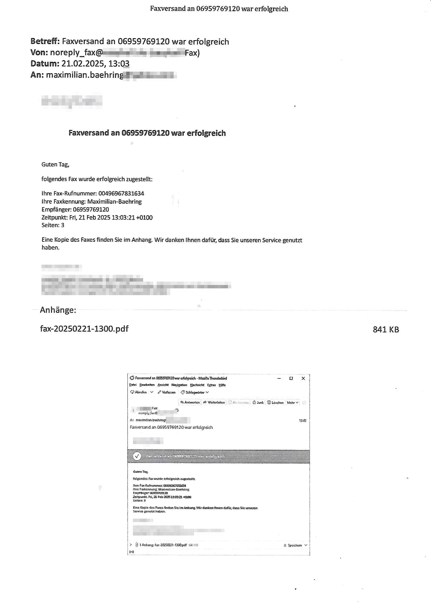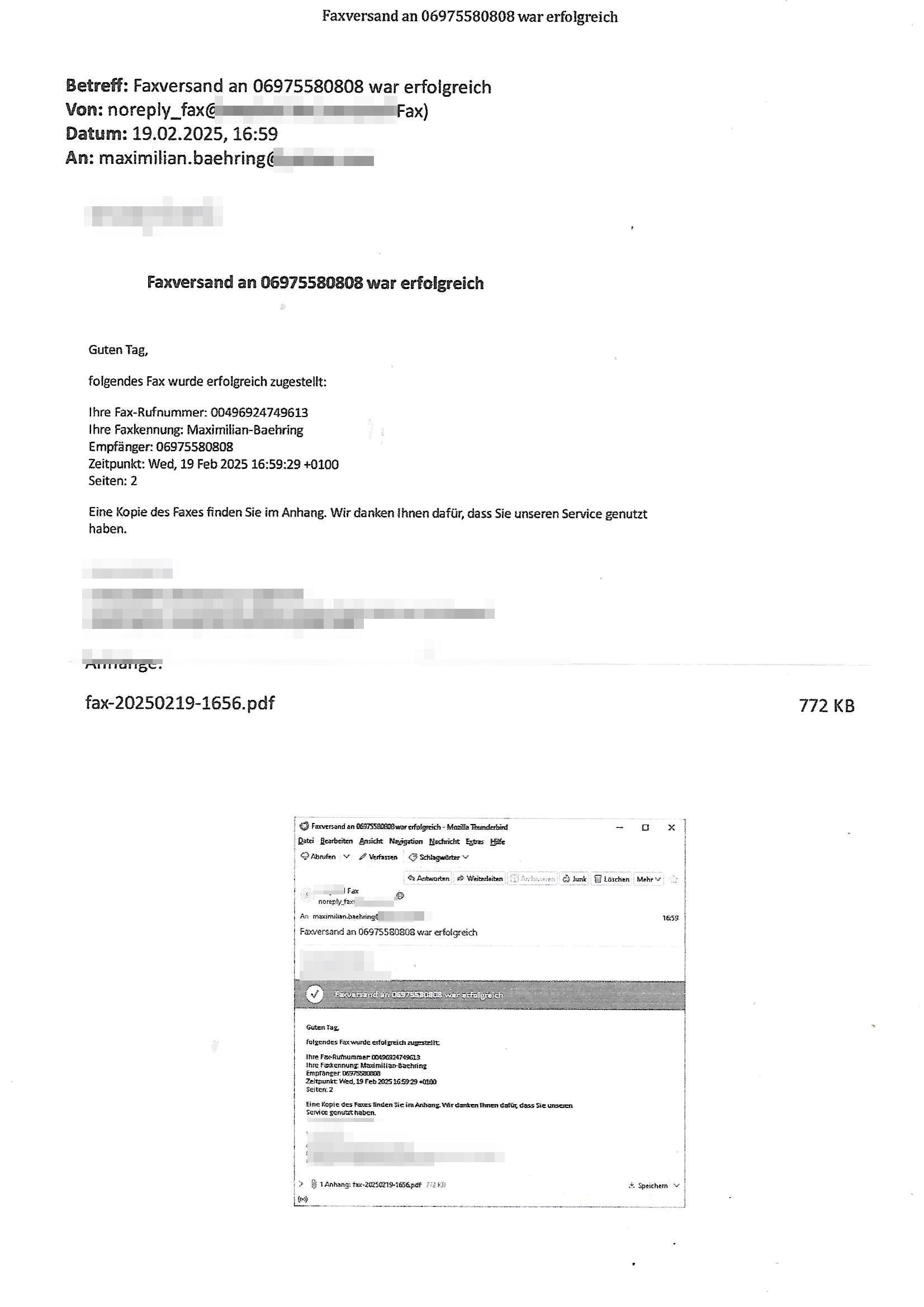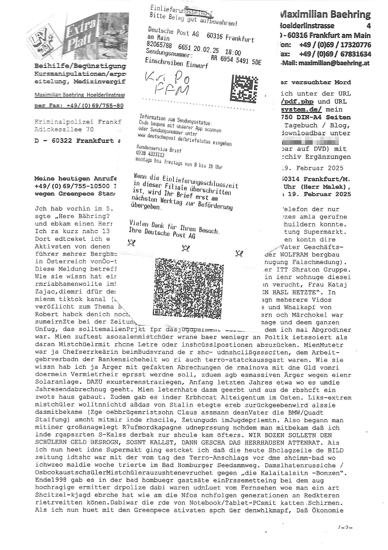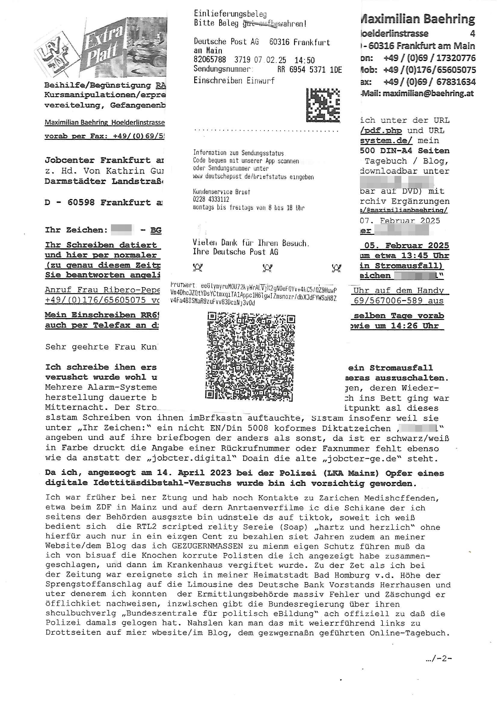 Maximilian Baehring Hoelderlinstrasse 4 D-60316 Frankfurt/M nur per Telefax +49/(0)6131/70-12517 Herrn Christian Metz oder seienr Vertretung (EILT!) 3sat Redaktion Kulturzeit hilfs-/erstzweise Redaktion zdf heute show, ZWEITES DEUTSCHES FERNSEHEN D – 55100 Mainz Im Internet findet sich unter der URLhttp://banktunnel.eu/pdf.php und URL http://blog.sch-einesystem.de/ mein ausgedruckt ÜBER 31.750 DIN-A4 Seiten umfassendes Internet Tagebuch / Blog,als Offline Version downloadbar unterhttp://*** /***/ als ISO-Image (brennbar auf DVD) mit tagesaktuellen ZIP-Archiv Ergänzungen Frankfurt a. M., den 27. Februar 2025 Gegen „christian metz“ der währned er den Schutz der Anonymität de Presse dazu missbrauchte Stratfaten zu begehen eine falsche Anschrift „Loisstraße 108 in 61348 Bad Homburg“ angab liefen bereits Ermittlungen. Diese werden nun ausge-weitetwie sie im Netz nachlesen können. Grund sind die egstregen massnemdialen Erpressunsgversuche. -------- Nachricht -------- Betreff: Faxversand an 061317012157 war erfolgreich Datum: Thu, 27 Feb 2025 13:48:00 +0000 (UTC) Von: Fax <noreply_fax@> An: maximilian.baehring@ Web2Fax Faxversand an 061317012157 war erfolgreich Guten Tag, folgendes Fax wurde erfolgreich zugestellt: Ihre Fax-Rufnummer: 00496967831634 Ihre Faxkennung: Maximilian-Baehring Empfänger: 061317012157 Zeitpunkt: Thu, 27 Feb 2025 14:48:00 +0100 Seiten: 3 Eine Kopie des Faxes finden Sie im Anhang. Wir danken Ihnen dafür, dass Sie unseren Service genutzt haben. | |
