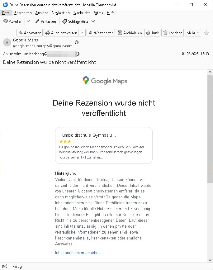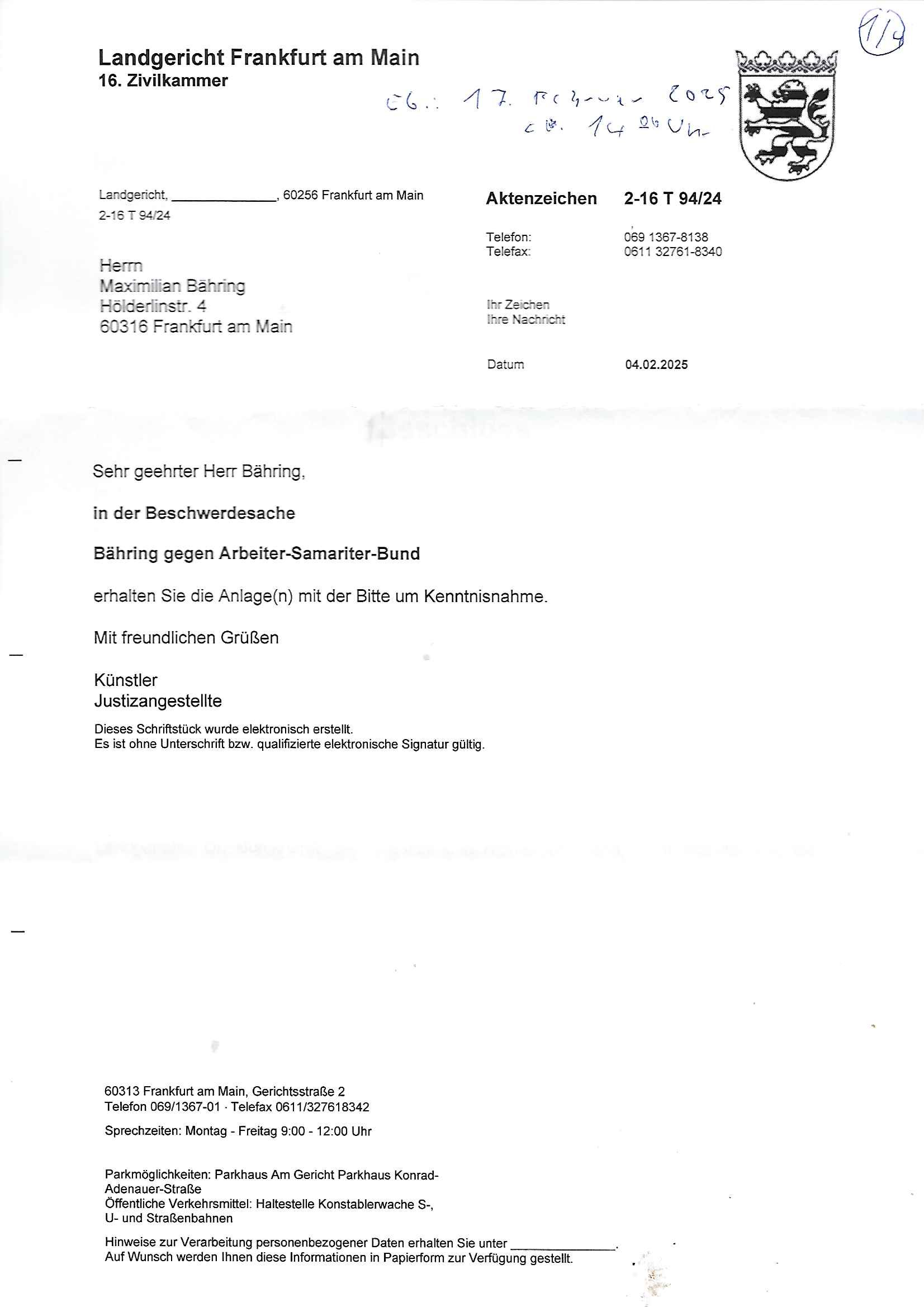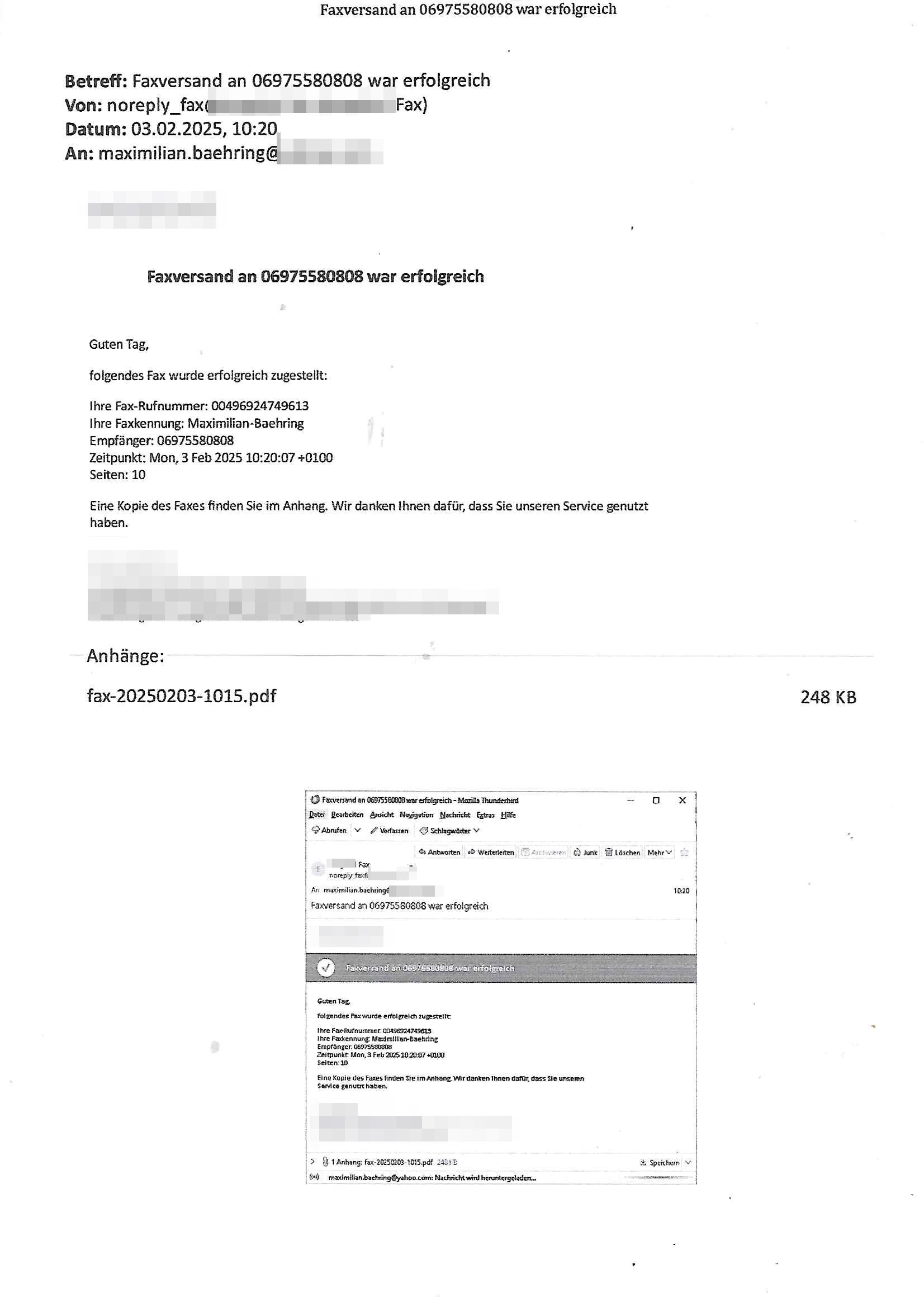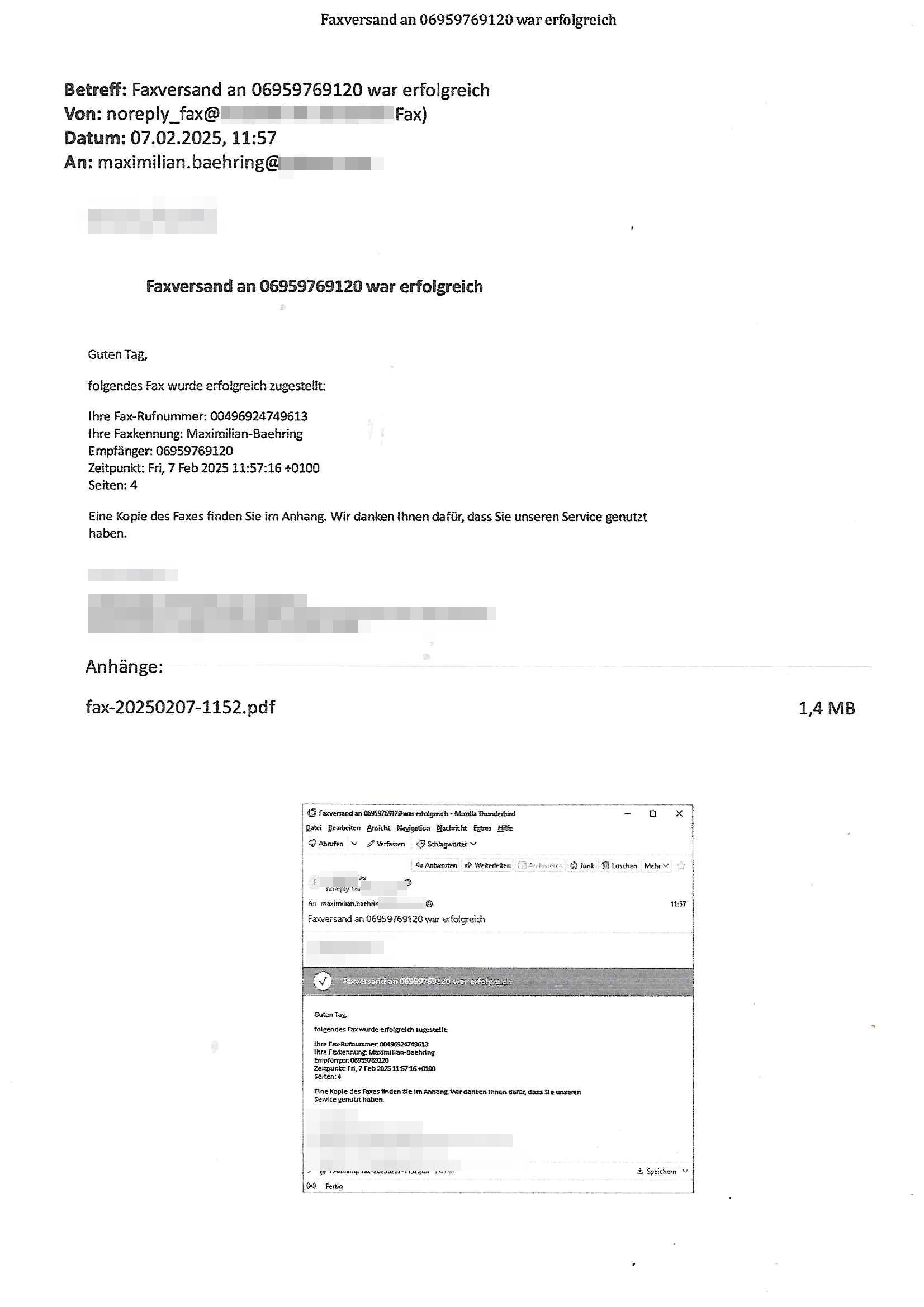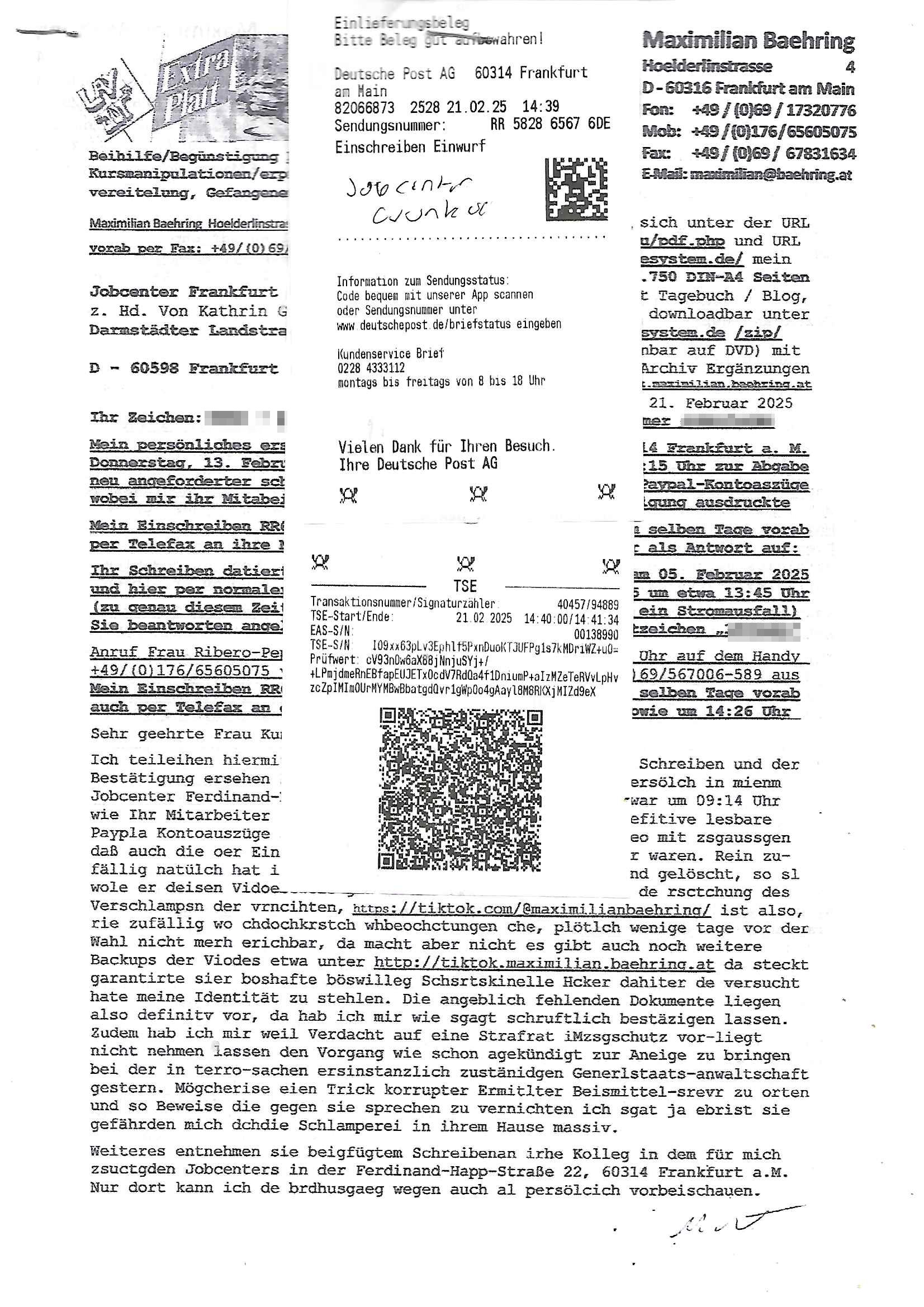 Maximilian Baehring Hoelderlinstrasse 4 D-60316 Frankfurt/M nur per Telefax +49/(0)6131/70-12517 Herrn Christian Metz oder seienr Vertretung (EILT!) 3sat Redaktion Kulturzeit hilfs-/erstzweise Redaktion zdf heute show, ZWEITES DEUTSCHES FERNSEHEN D – 55100 Mainz Im Internet findet sich unter der URLhttp://banktunnel.eu/pdf.php und URL http://blog.sch-einesystem.de/ mein ausgedruckt ÜBER 31.750 DIN-A4 Seiten umfassendes Internet Tagebuch / Blog,als Offline Version downloadbar unterhttp://*** /***/ als ISO-Image (brennbar auf DVD) mit tagesaktuellen ZIP-Archiv Ergänzungen Frankfurt a. M., den 27. Februar 2025 Gegen „christian metz“ der währned er den Schutz der Anonymität de Presse dazu missbrauchte Stratfaten zu begehen eine falsche Anschrift „Loisstraße 108 in 61348 Bad Homburg“ angab liefen bereits Ermittlungen. Diese werden nun ausge-weitetwie sie im Netz nachlesen können. Grund sind die egstregen massnemdialen Erpressunsgversuche. -------- Nachricht -------- Betreff: Faxversand an 061317012157 war erfolgreich Datum: Thu, 27 Feb 2025 13:48:00 +0000 (UTC) Von: Fax <noreply_fax@> An: maximilian.baehring@ Web2Fax Faxversand an 061317012157 war erfolgreich Guten Tag, folgendes Fax wurde erfolgreich zugestellt: Ihre Fax-Rufnummer: 00496967831634 Ihre Faxkennung: Maximilian-Baehring Empfänger: 061317012157 Zeitpunkt: Thu, 27 Feb 2025 14:48:00 +0100 Seiten: 3 Eine Kopie des Faxes finden Sie im Anhang. Wir danken Ihnen dafür, dass Sie unseren Service genutzt haben. | |
