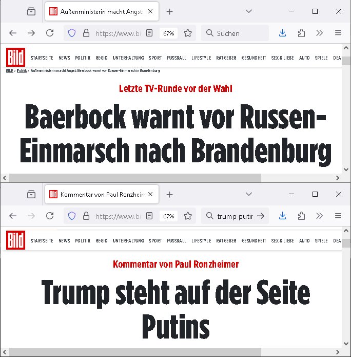 https://www.3sat.de/kultur/kulturzeit/ukraine-kulturelles-erbe-in-gefahr-sendung-vom-26-02-2025-100.html https://www.bild.de/politik/ausland-und-internationales/ex-kgb-offizier-behauptet-wir-haben-trump-als-russen-spion-angeworben-67b9ba655cbd13341d0e30e9 https://www.rtl2.de/sendungen/berlin-tag-nacht/videos/1100106619-sascha-am-ende?playlist=26416 | |
