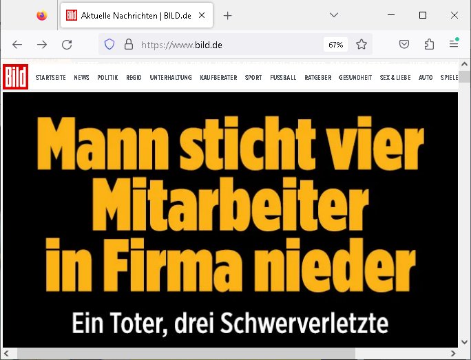 https://www.bild.de/news/gewerkschaft-meldet-langjaehriger-dgb-chef-michael-sommer-gestorben-68628c7c69afbf7d84ed22a1 https://www.bild.de/news/in-bayern-vier-menschen-in-firma-niedergestochen-68637c28b6cffd1961b37efd | |