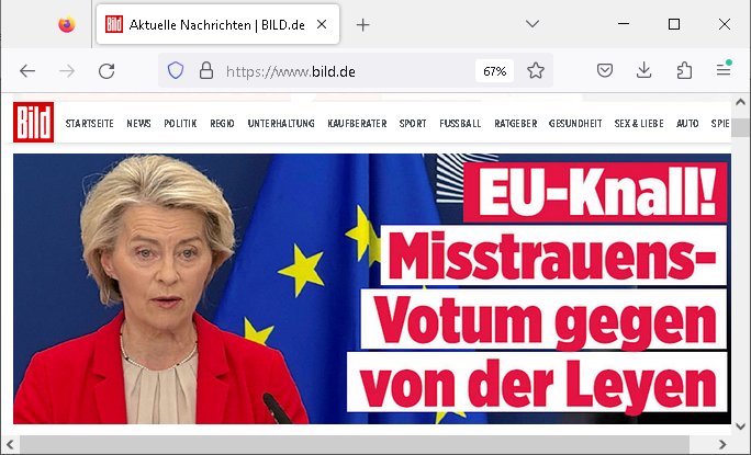 https://www.bild.de/politik/ausland-und-internationales/eu-kommission-misstrauensantrag-gegen-ursula-von-der-leyen-68655d2d5ccab23ab11a7ba5 https://www.bild.de/politik/ausland-und-internationales/belgrad-polizei-setzt-traenengas-bei-massenprotesten-ein-6860e2c754352c1fc4b3071a | |