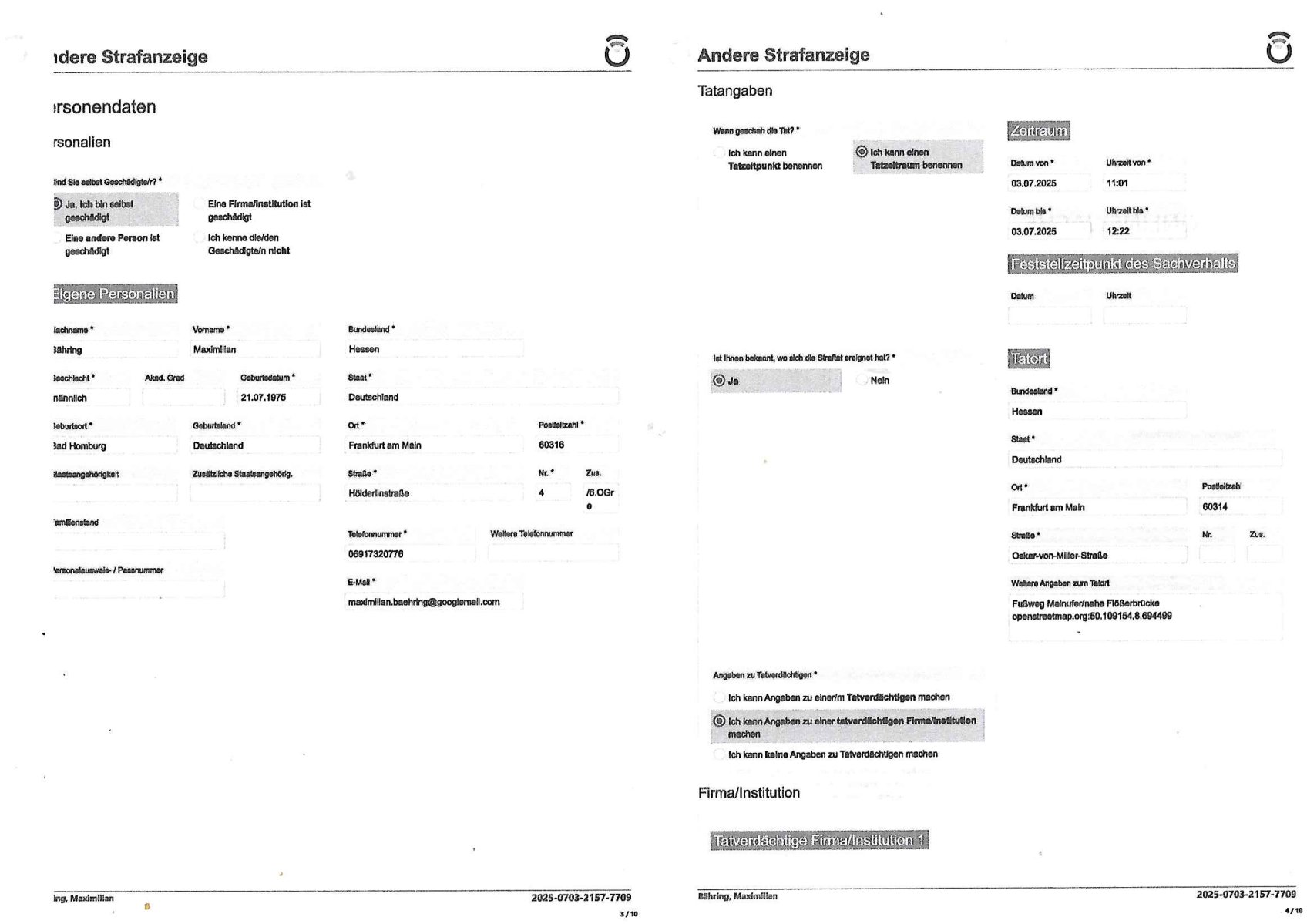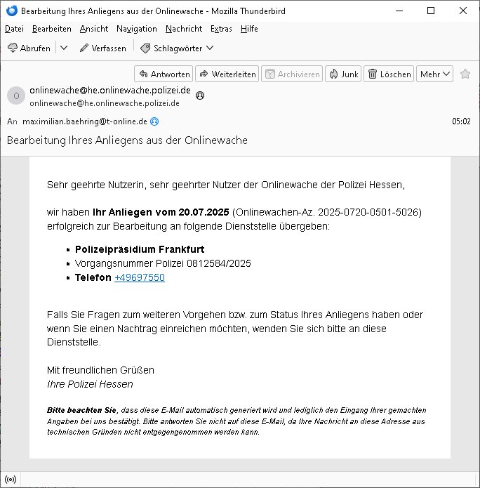 eine nebenstsraße ein) Strafzege weg rssistscher und sexuller diskirminerie - ich werde anders asl krimienlle Asiatinnen Puffmütter/Kdipperinnen vo Menschen-schleueser-scheeballlsystemen nicht bedient bei der polizei -wiele ich ien waiser Weißer bin und nicht die "gelbe "(Vietcong) "Gefahr" wer dic demnächst mal stelen, es ist mir shcon üerbl afagfllen daß die gaze zet dei Bulen am jdüschen Msuem dumm rum-stehen satt sich mal um Kidappinh STrafaten des Mossad in Deutschland wegen Eprssung der Rückgab angelcih von der Nazis ent-eigneten jdüscheostgebioet altegums zu kümmern oder maänenr die von Frauen umgebracht werden udn für die es keinen "hetwrosexuell atsische Männer - Notruf" gibt. Die mainova "NRM Netzdienste" Betrüger gegen die ich x-fax anzeg eiegrcht hatte, begindn mit dem Monat wo sie inde rkappesgasse in abd hombur ober-Erlenbach eine solaranalge istallerneollten ud annspäter hier im Haus, das war ich glaub 2012 die waren hier auch wieder qusi patrollirend unterwegs. | |