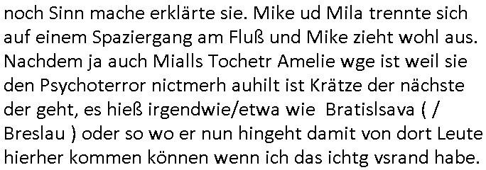 noch Sinn mache erklärte sie. Mike ud Mila trennte sich auf einem Spaziergang am Fluß und Mike zieht wohl aus. Nachdem ja auch Mialls Tochetr Amelie wge ist weil sie den Psychoterror nictmerh auhilt ist Krätze der nächste der geht, es hieß irgendwie/etwa wie Bratislsava ( / Breslau ) oder so wo er nun hingeht damit von dort Leute hierher kommen können wenn ich das ichtg vsrand habe. https://tvinfo.de/fernsehprogramm/2178589576-die-simpsons https://tvinfo.de/fernsehprogramm/2178589582-die-simpsons | |