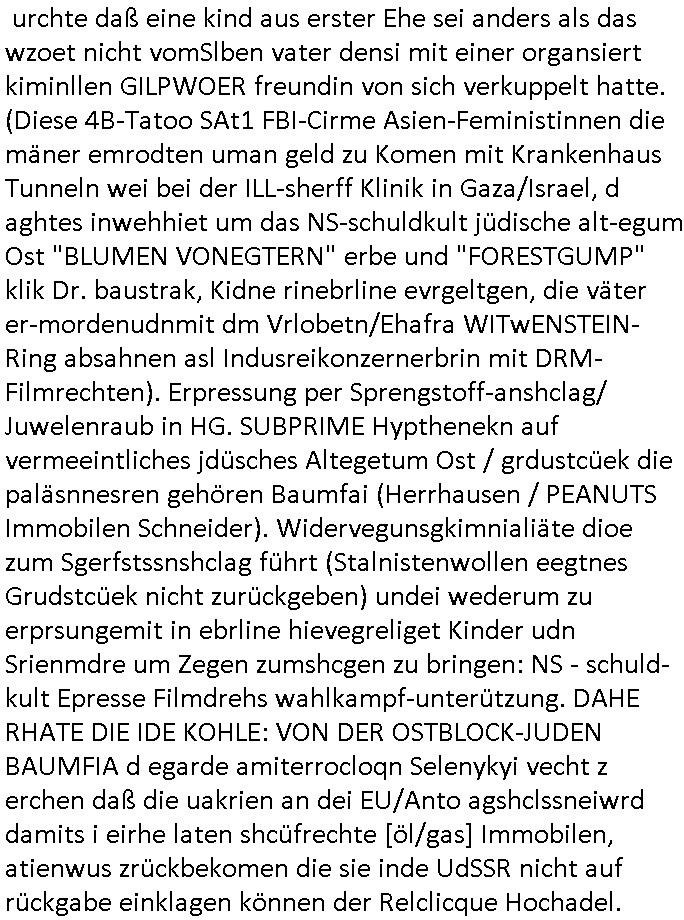 | machten was dann zuSprgtsoffnshcag auf Bankvorstand Herhussn Liosuien fühte. DIebgalch nute ich seirzet aufder slene tercke für Fahrten in die Shcule. Genau so eine eprssunwiesie gesren indem ZD Film um 20:15 Uhr berichbenwird hab ichs eit ns dem Ostblock"scuht" mediziner-Altegum-osb/Bankenimmobilien-makler-handwereker-S*xurty Gesindesle erlebt. Als ich dann als Zeuge gegen die aussagen wollte versihcte man mich in den scheinbaaren Suizid zu hetzen peenführtem inmien erblienhienvegrelgten kidn nchdemmanmich mit K.O. Drps ("bach-bluEten)"vergifte udn das haus angzündet, Telfolietg gekappt und meine post abgefangen hatte. Die erossfnen angbeloche Joralsietn führe also wie die Ehescheidungs - KIDNAPPERIN indem "BLOGK-PROZESS HMBURG"ein IRRERnlklink-THERAPIE TAGEBUCH. Am Ende führte die Scheidungsasudenrstzung zu nem SUIZID wiel fogednes passirt war. Die angclhe Chrfrekaterin (WIKLICH?Ichdate die hatte längst geküdgt udn arbeitete af iegerhcnung?) der journalsiten hateiefch die nicht für sie betsimte Rechercheakten aus dem "OLINE TAGEBUCH" genomen udn UETR SLCHEM NAMEN als ihren eigenen ganz großen KNÜLLER vekauft was dazu führt daß mit Rufmordkampagne Firmen in die Pleite egtrebew urde von der Velrudungs Hetz-Lügenpresse ("METALLGESELLSCHAFT ÖL" usw? was dann zum Sprgtsoffnshcga auf Herrhausen/Rohwedder führt die mehrer hundert Mio Euro Verluste einfuhren?)