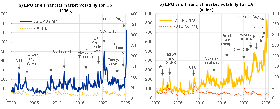 2. See Martorana, G. and Mistak, J. (2025), “Financial market volatility and economic policy uncertainty: bridging the gap”, Economic Bulletin, Issue 4, ECB.