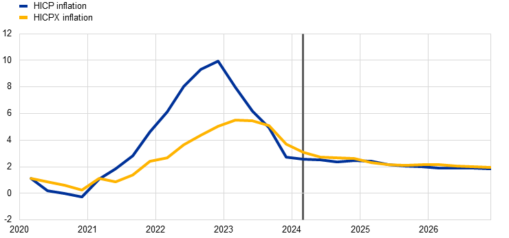 Source: ECB calculations and June 2024 Eurosystem staff macroeconomic projections for the euro area.