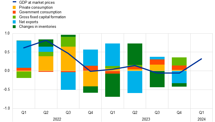 6. The expenditure breakdown of GDP for the first quarter of 2024 was published on 7 June, after the cut-off date (5 June) for the data included in this issue of the Economic Bulletin.