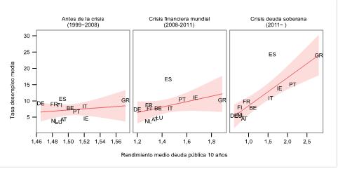 Gráfico 2: Relación entre tensiones financieras y desempleo