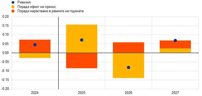 Вижте също The performance of Eurosystem/ECB staff projections for economic growth since the COVID-19 pandemic („Успешност на прогнозите на експертите на Евросистемата/ЕЦБ за икономическия растеж след пандемията от COVID-19“) Икономически бюлетин, брой 7, ЕЦБ, 2024 г.