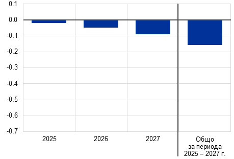 (отклонение в процентни пунктове от базовата прогноза) | (отклонение в процентни пунктове от базовата прогноза) |
