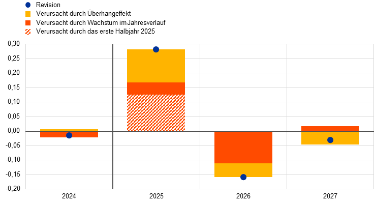 Revisionen der Projektionen für das Wachstum des realen BIPs gegenüber den Projektionen vom Juni 2025 – Unterteilung in statistische Überhangeffekte und unterjährige Effekte