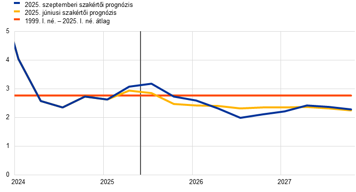 Az EKB szakértői prognózisai | 2025. szeptember | 1,2 | 1,0 | 1,3 | 2,1 | 1,7 | 1,9 | 2,4 | 1,9 | 1,8 |