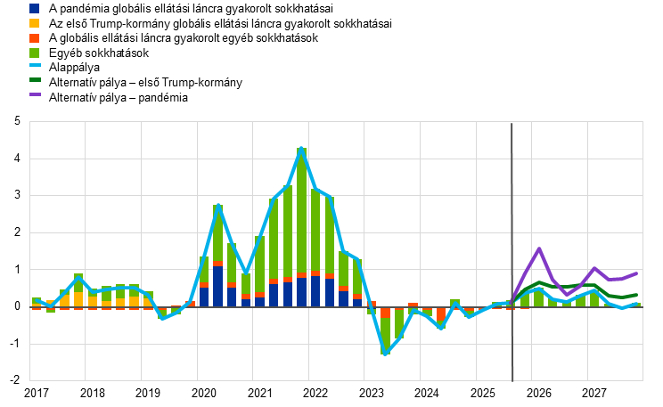 Forrás: az EKB-Global és EKB-BASE modellek és az EKB szakértőinek számításai.