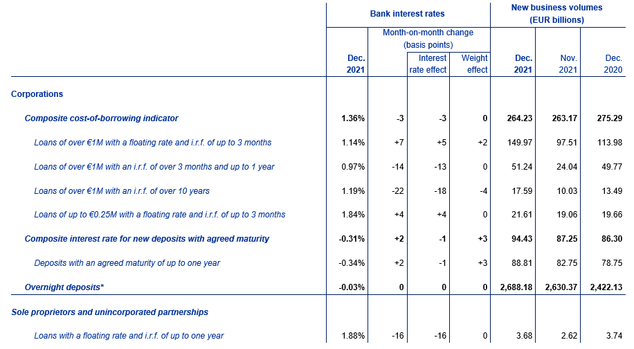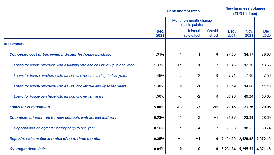 Euro area bank interest rate statistics: December 2021