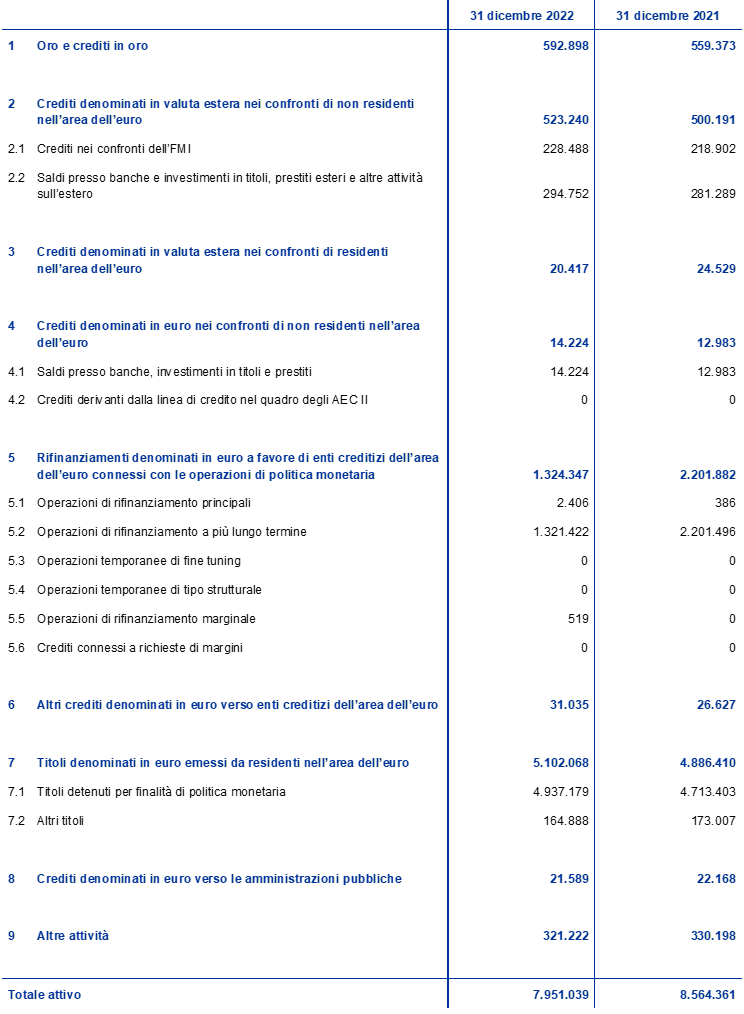 Stato patrimoniale consolidato dell’Eurosistema al 31 dicembre 2022