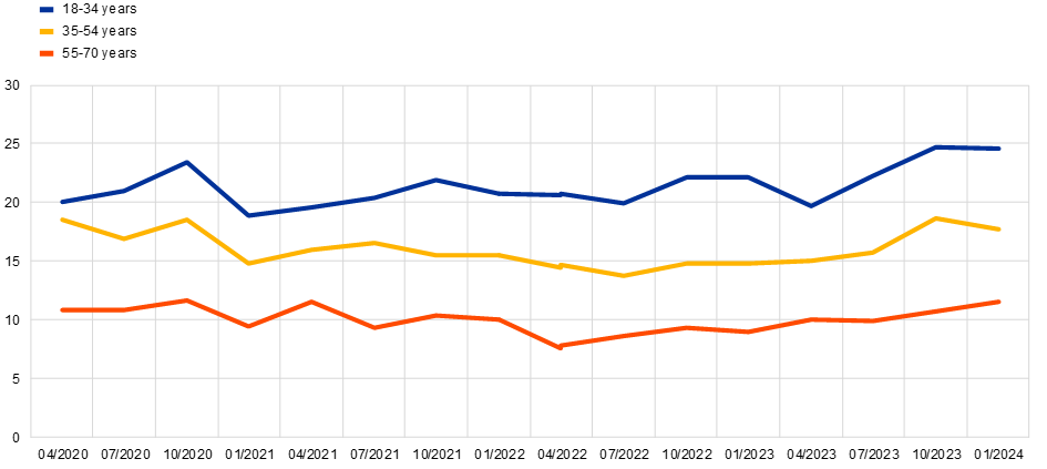 Credit applications over the previous three months – by age group