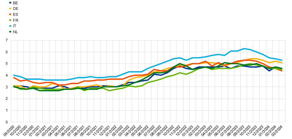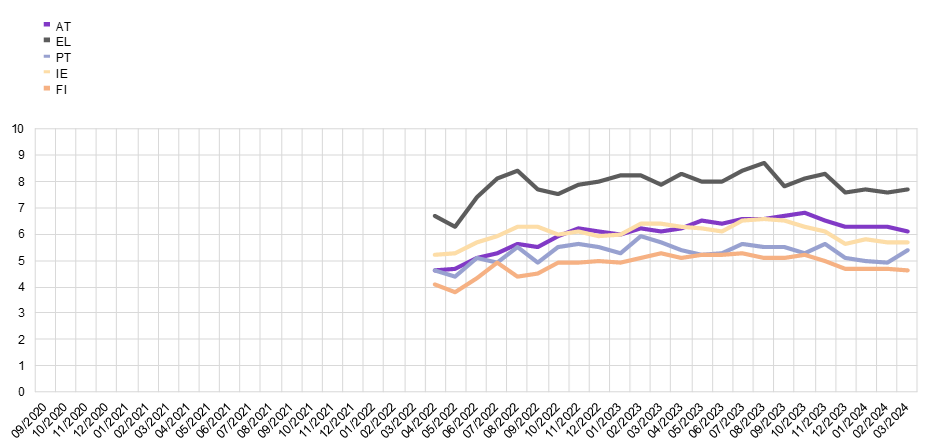 Notes: Weighted estimates. Mean values are winsorised at the 2nd and 98th percentiles of each survey round and country. The shift in the time series in April 2022 visualises the change in the composition of the aggregates due to the inclusion of five additional countries (IE, GR, AT, PT and FI).